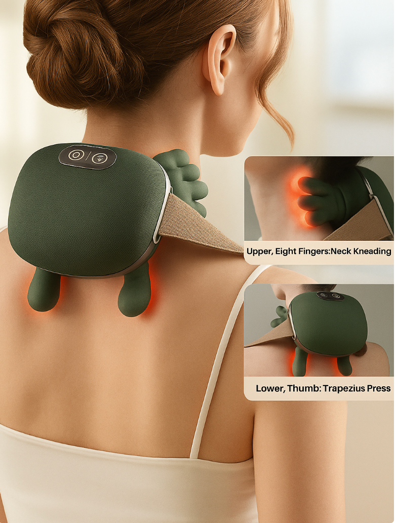 Experience next-level relaxation with the Bionic Heated Massage Master™, a compact yet powerful shoulder and neck massager designed to mimic the soothing touch of real hands. Crafted with a modern, ergonomic design, this massager fits comfortably around your neck and shoulders, delivering targeted relief after long hours of work or stress.